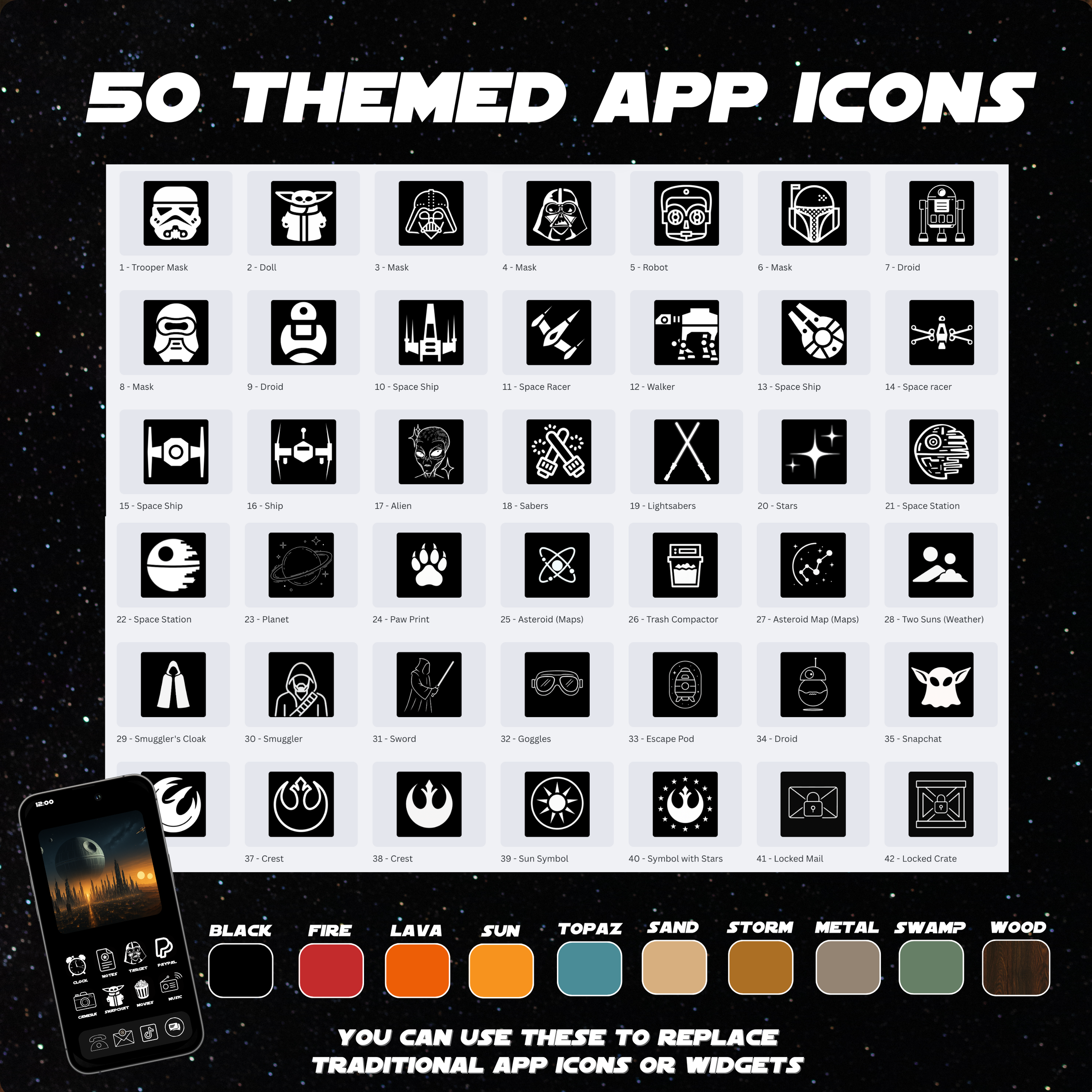 Fully themed widgets to match your vibe—forest moons, lava planets, royal chambers,