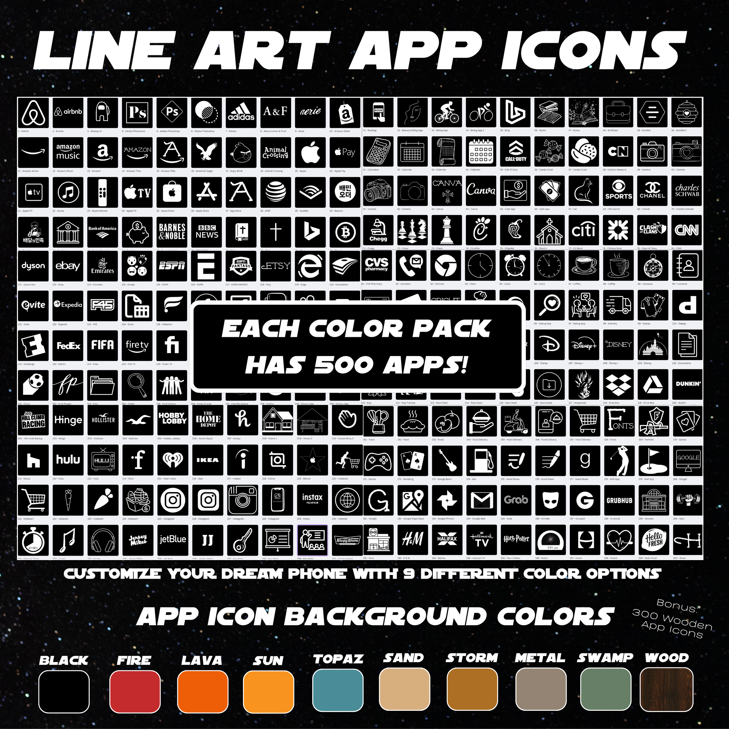 -500 Line Art App Icons in 10 Colors = 5000 Total