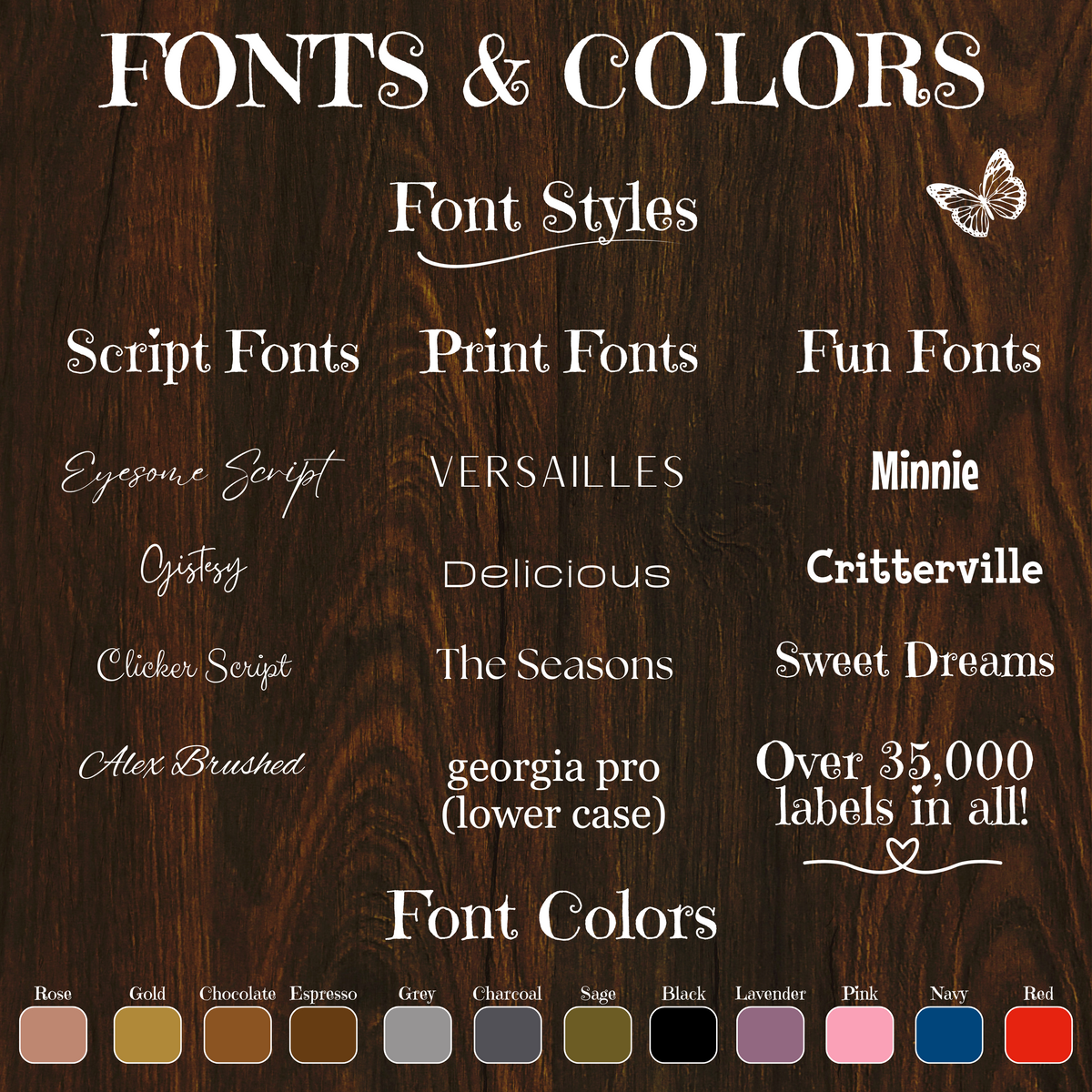 -62 Bottle or Rectangle Labels in all fonts and colors listed = 16,368 Labels